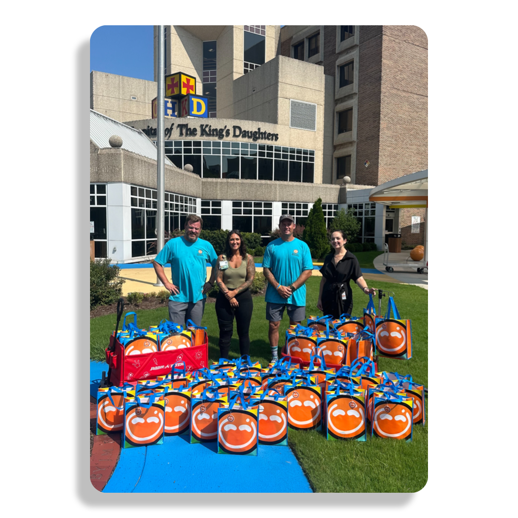 The first 50 Smiley Packs donated to The Children's Hospital of The King's Daughters in Norfolk, Virginia. Each pack is thoughtfully filled with items crafted to bring smiles to young patients. This donation reflects our deep commitment to supporting children who are bravely facing medical challenges. By delivering these special gifts, we hope to brighten their days and provide a sense of comfort during their time in the hospital.