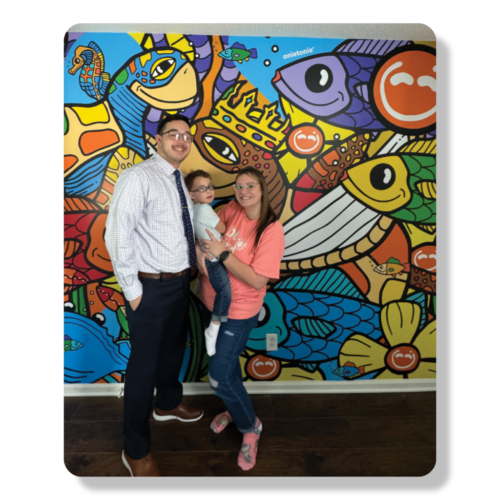 Cooper and the King Family proudly stand in front of his vibrant new room mural in Virginia Beach, Virginia. The mural, a personalized work of art, has transformed Cooper's space into a place of inspiration and joy. This creative addition not only brightens the room but also reflects the love and support surrounding Cooper, making his space a true sanctuary.